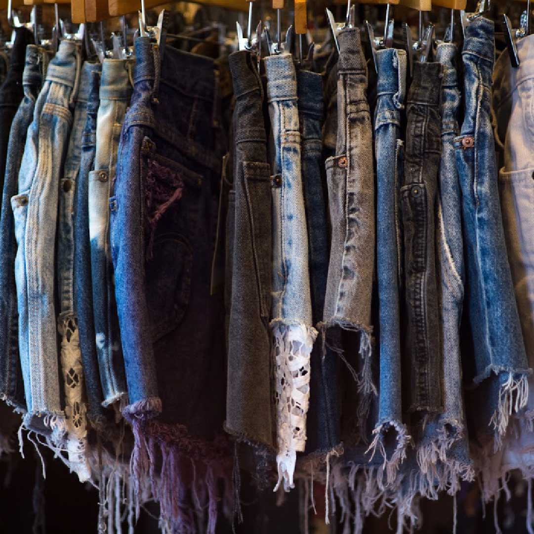 Collection → Warehouse unloading → Trousers-only sorting → Wholesale packing → Shipment upon request